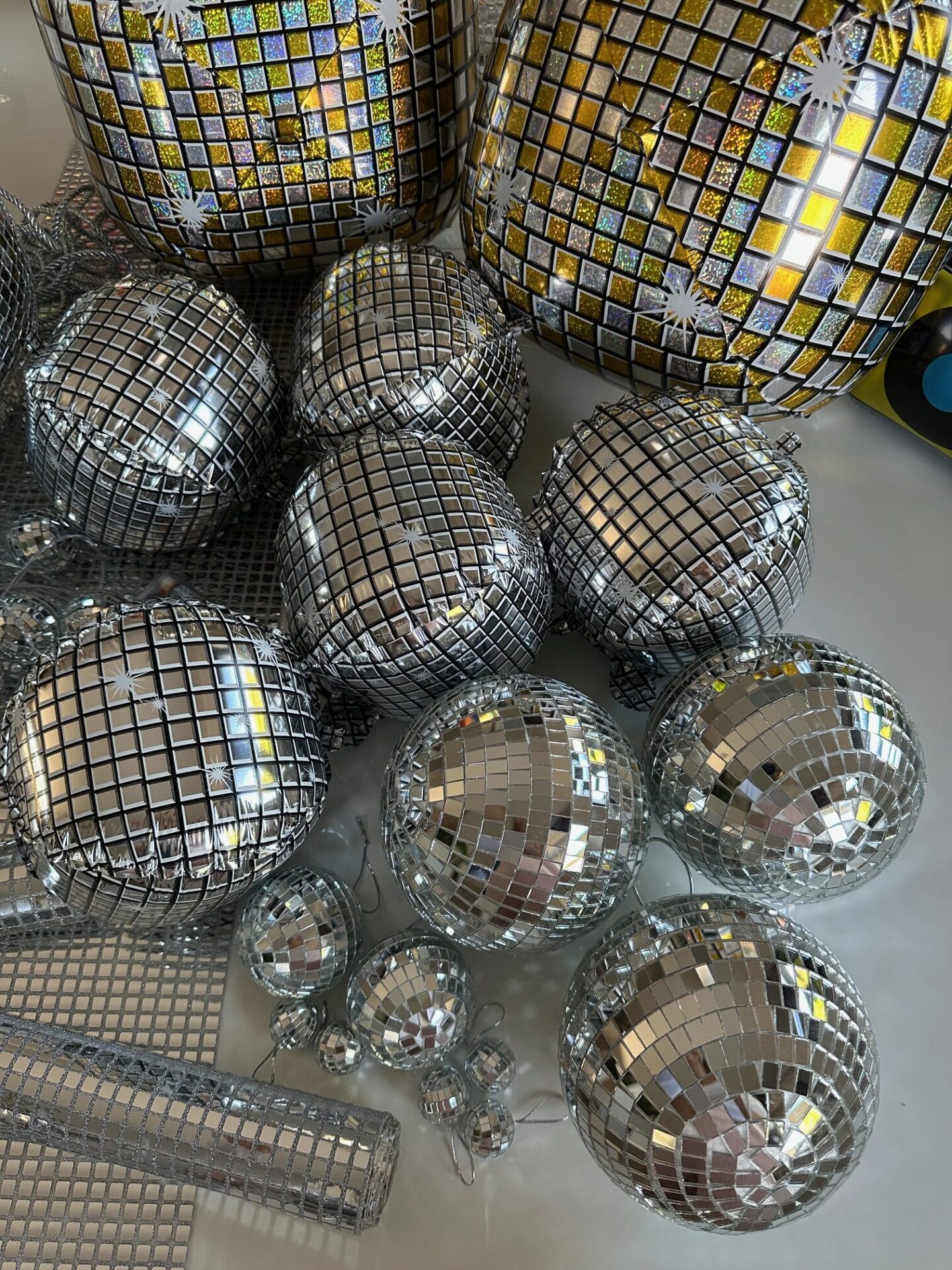 Oferujemy na wynajem efektowną dekorację w stylu disco, która przeniesie Twoje wydarzenie w klimat tanecznych hitów i błyszczącej zabawy! ✨