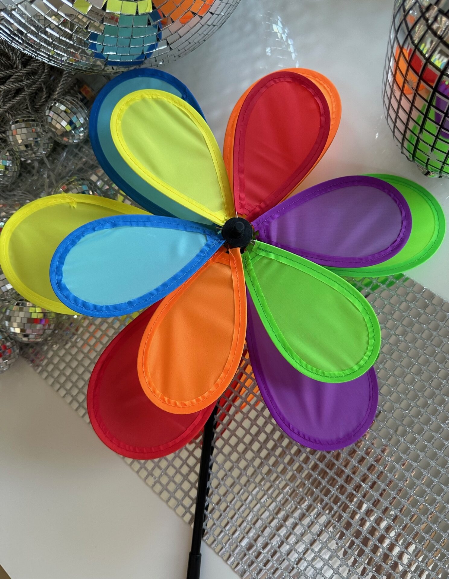 - Wiatrak w formie kwiatka brokatowy) o średnicy – 4 sztuki