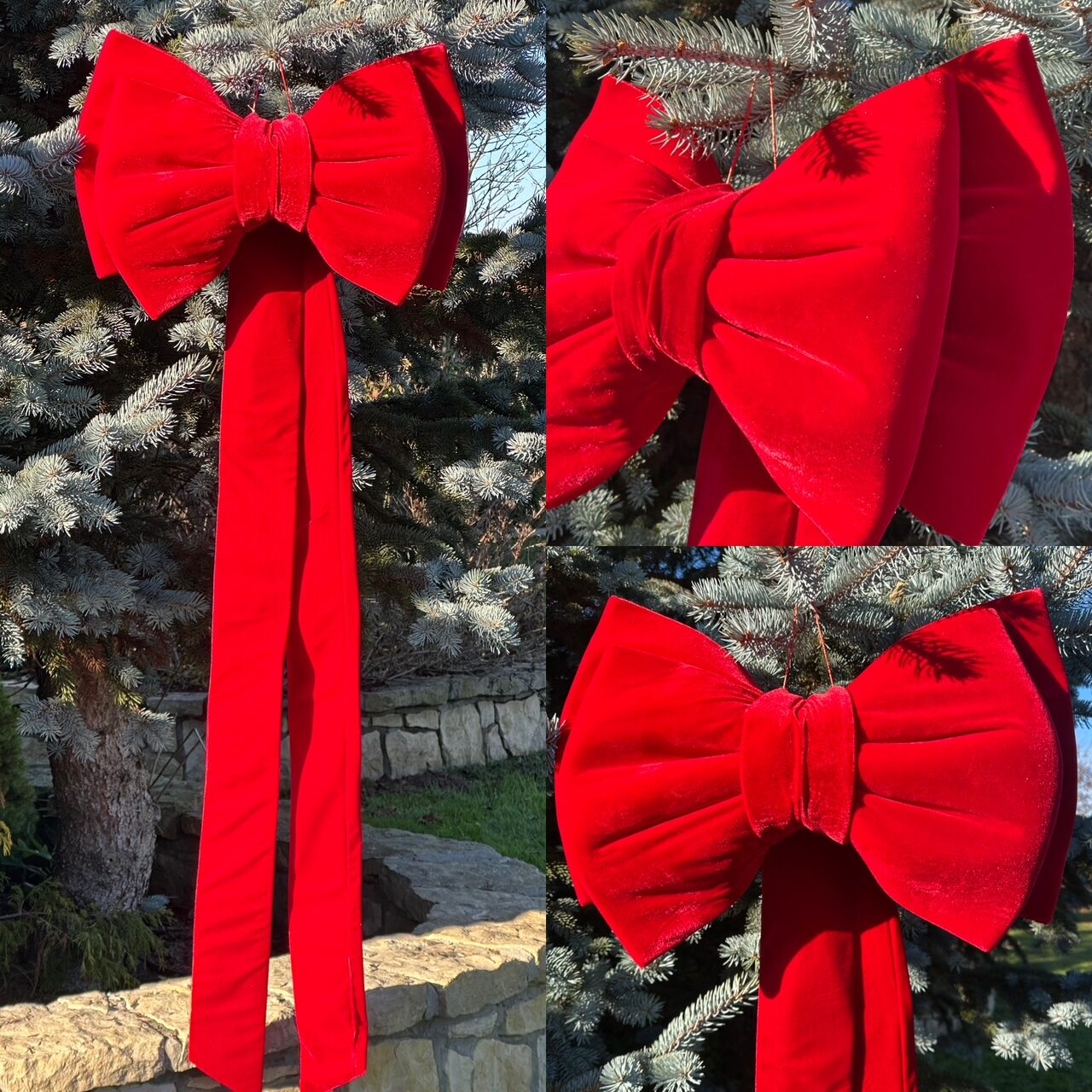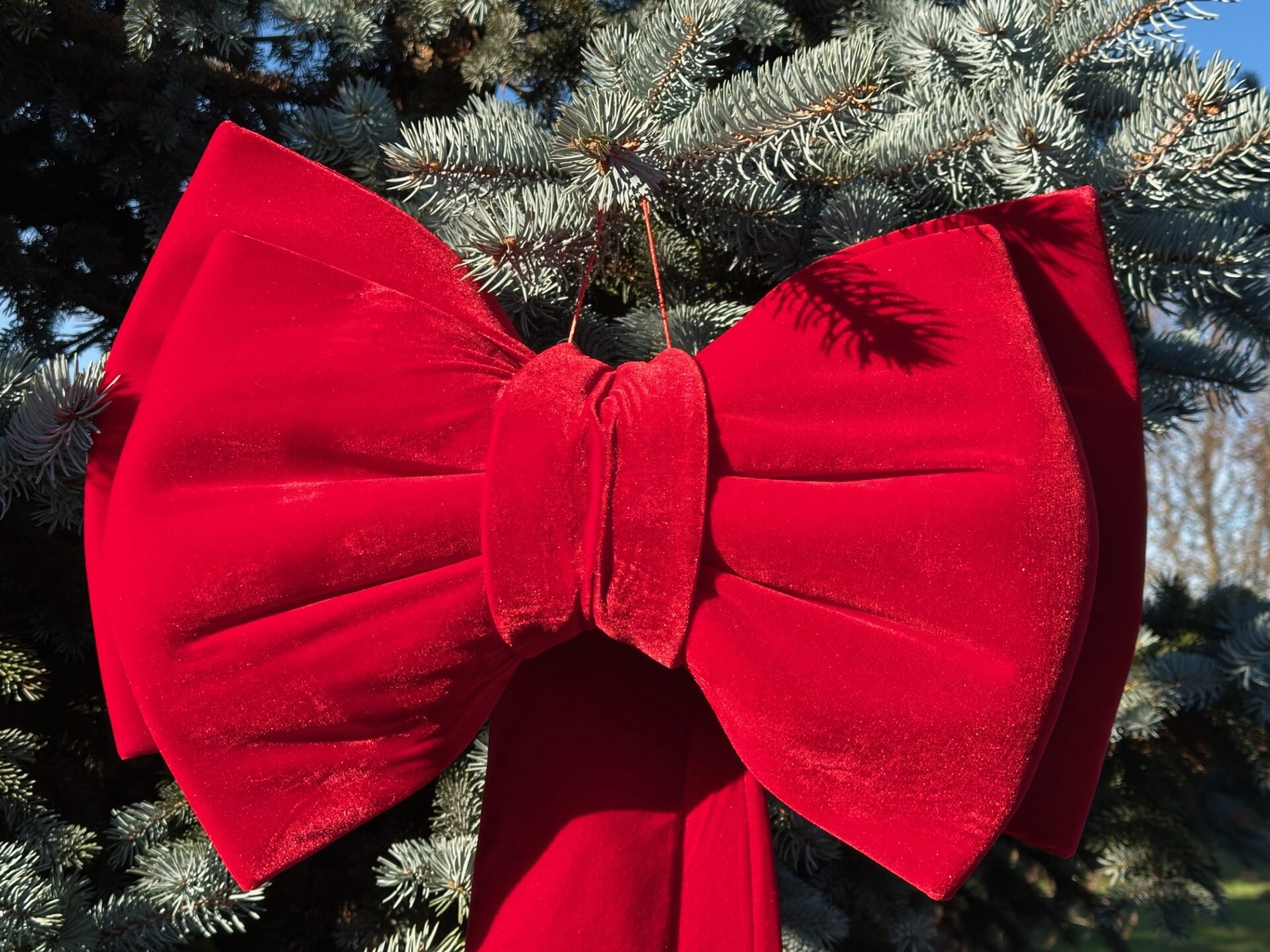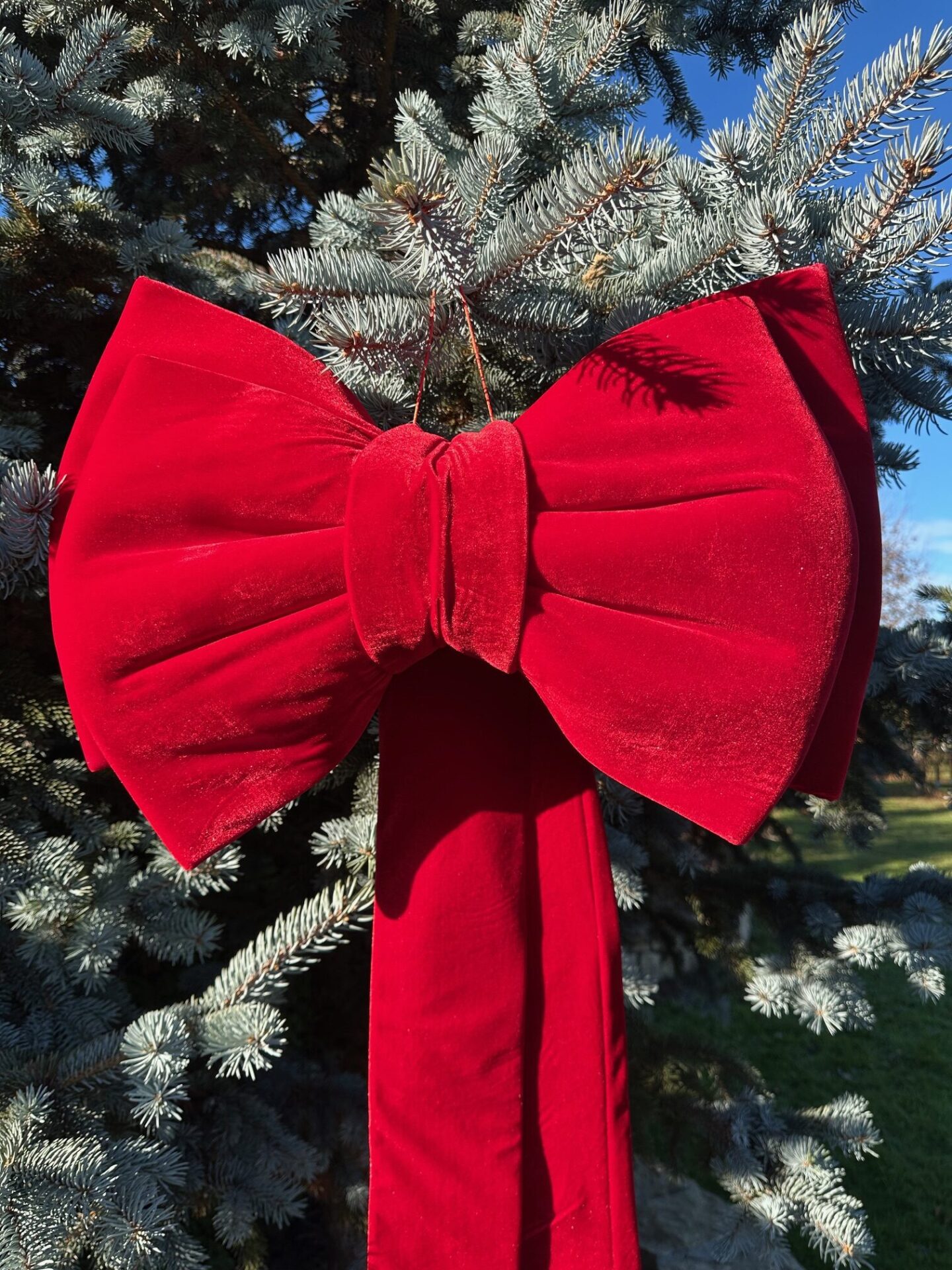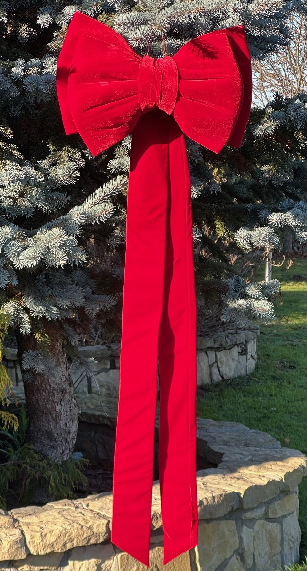 Duża czerwona welurowa kokarda to elegancka i ponadczasowa ozdoba, która wprowadza do wnętrza ciepły, świąteczny klimat. Wykonana z miękkiego, przyjemnego w dotyku weluru, przyciąga wzrok intensywną czerwienią oraz piękną, głęboką fakturą materiału.