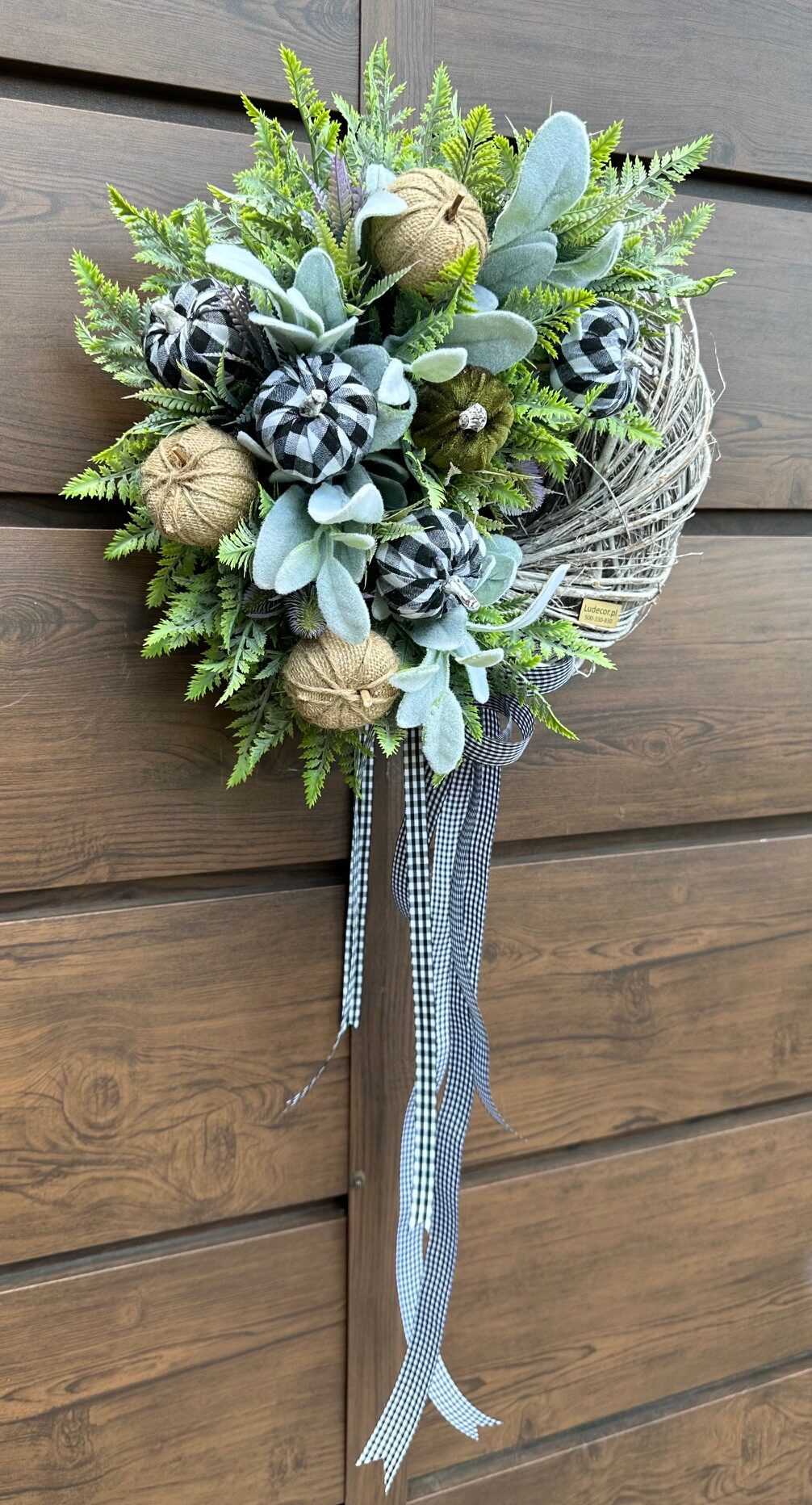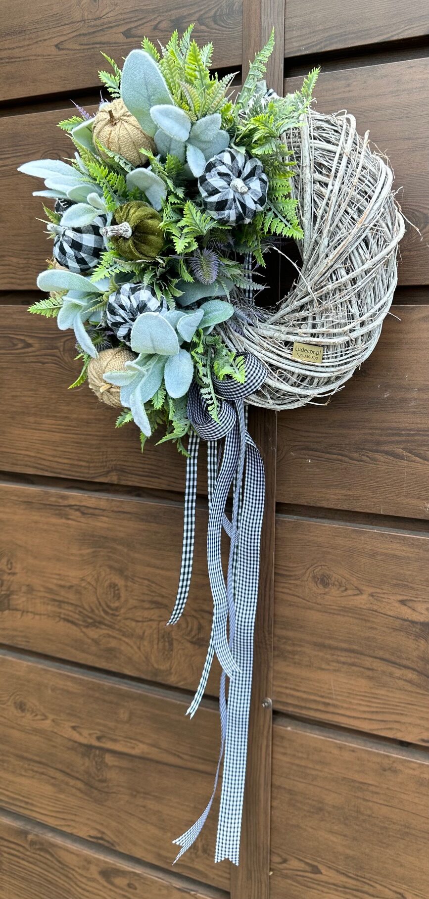 We offer you a hand-made autumn wreath. Durable composition, made of artificial plants, natural cones. The wreath is made on a solid, stable base. The above decoration can be a perfect idea for a gift or an autumn decoration for a door, office, shop, hotel, beauty or dental office.