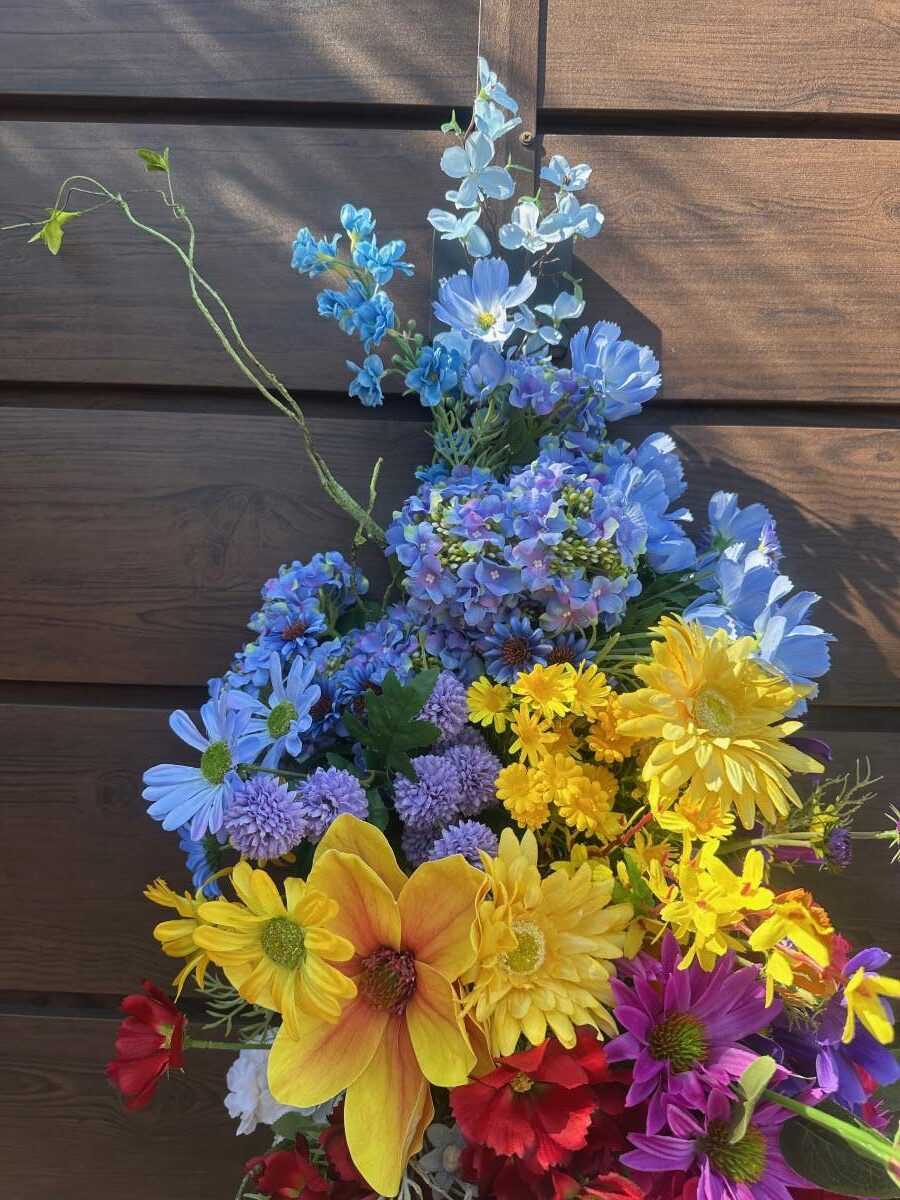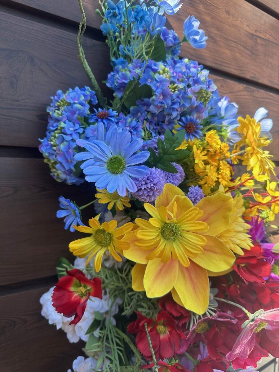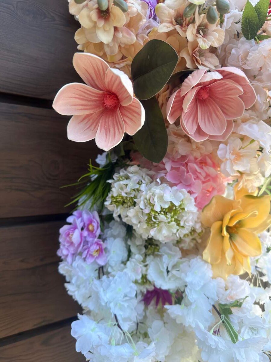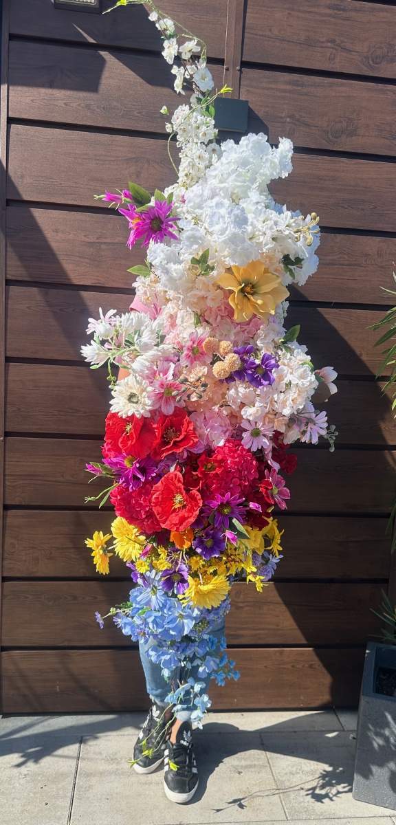 Bardzo gęsta plastyczna gałąź różnorodnych kolorowych, tęczowych kwiatów. Gałąź można wieszać i formować według własnych potrzeb i upodobań- w pionie, poziomie. Idealna do sesji fotograficznych, do zawieszenia na huśtawce, ścianie lub jako ozdoba drzwi wejściowych.